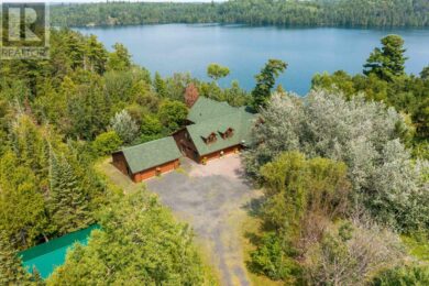 New Listing. The Architecture is Honest, Graceful and Timeless! One of the finest properties on Crow Lake, this four-season log home was designed and hand-crafted by the discerning owners. Set on 1.56 acres with crown land on three sides and 180 feet of shoreline. Featuring over 2,400 s/f of living space including a Great Room with fireplace, island kitchen with built-in appliances, dining room, primary and guest bedrooms, 4-bathrooms, open loft, main floor laundry and attached heated garage with office and utility room. Constructed slab-on-grade with in-floor heat. The logs are primarily cedar with some red pine and spruce. The property is beautifully landscaped and features a spacious parking area, horseshoe driveway, a 31′ x 31′ detached garage on concrete pad plus a 22′ x 28′ log carport on concrete footing. There is a “U” shaped floating dock at the water’s edge. Crow Lake is known for it’s deep gin clear water and is home to lake trout, musky, smallmouth bass, northern pike and lake whitefish. Located moments north of Nestor Falls. Viewing by appointment only please. (id:34485)