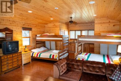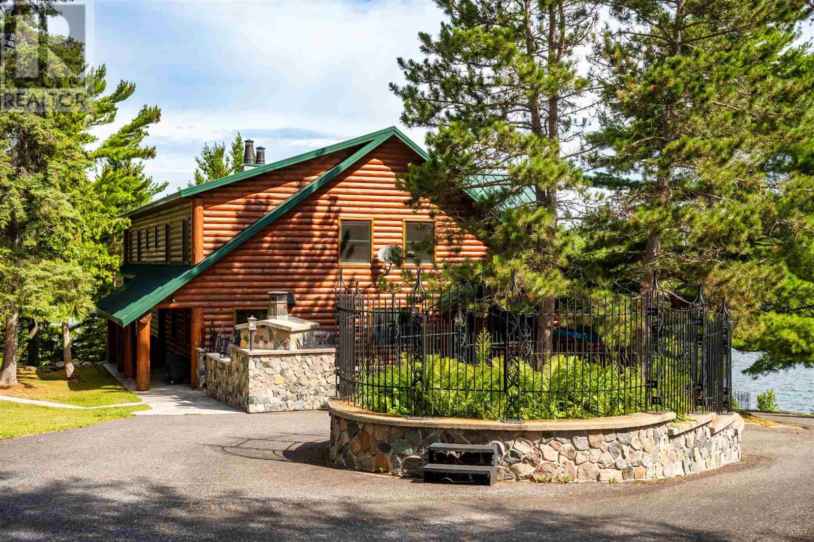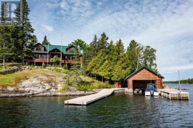 Spectacular Whitefish Bay vacation compound! Built in the great lodge tradition of Montana and Wyoming, this stunning 5,411 sq. ft. vacation home combines voluminous interior spaces, expansive windows, a floor-to-ceiling stone fireplace and high-end finishes throughout! Boasting 5 bedrooms, 3.5 baths, an open double-island kitchen, dining room, Great Room, sunroom, screen room and 2nd floor game room, there is plenty of space for family and friends! Multiple outbuildings on the property include a 576 sq. ft. self-contained 2-BR guest cottage, Beach cottage, Boathouse, Double garage and hobby shed. The 1.17 acre property is low profile and beautifully landscaped including raised garden beds, a stone patio with outdoor kitchen and fire pit plus a waterside fire pit. Mature cedar, white pine and spruce trees are interspersed with junipers and native plants providing a sense of solitude on the property. There is 331 feet of rambling granite and sand beach shoreline. All amenities including; exclusive built-in appliances; forced air propane heating; central air conditioning; 200-amp hydro service, propane fireplaces; lake-drawn water system with filtration; on-demand hot water and certified septic system. Located 5-min from the conveniences of Sioux Narrows and 10-min from pickle ball courts! Viewings by appointment only please. (id:34485)